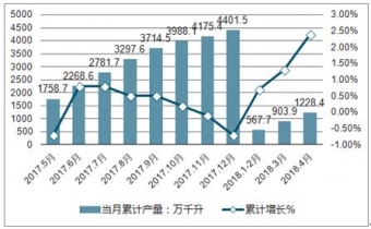 2017-2019年全國(guó)啤酒當(dāng)月累計(jì)產(chǎn)量及增長(zhǎng)走勢(shì)