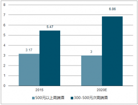 2015和2020年次高端和高端白酒銷量預(yù)計(萬噸)
