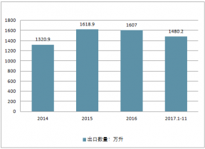 2014-2019年1-11月我國白酒進(jìn)口量情況