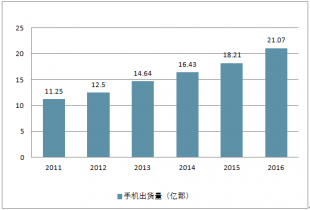2011 至 2016 年智能手機出貨量從 0.91 億臺增長至 4.67 億臺,年復(fù)合增長率達到 19.67%。從最新的 17 年 11 月數(shù)據(jù)來看,智能手機已從增量市場進入存量市場,需求邁向多元化和定制化,消費升級是智能手機行業(yè)新一輪的消費增長點。
