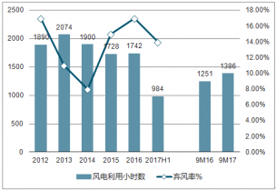 2017 年今年以來西北地區(qū)風電消納顯著改善,紅六省中內(nèi)蒙、吉林、寧夏摘到紅色帽子。2017 年國內(nèi)風電消納顯著改善,全年棄風電量419億千瓦時,同比減少78億千瓦時,棄風限電形勢大幅好轉(zhuǎn),低于 2015 和 2016年全年水平 2017 年全國風電利用小時 1948小時,同比增加 203小時。