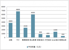 教育各細(xì)分領(lǐng)域市場(chǎng)規(guī)模(億元)