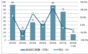 2012-2019年中國(guó)柴油進(jìn)口數(shù)量統(tǒng)計(jì)圖