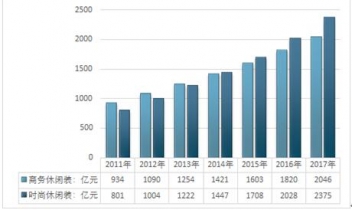 2017年我國男裝休閑裝規模約4421億元,其中商務休閑裝規模約2046億元,時尚休閑裝規模約2375億元。