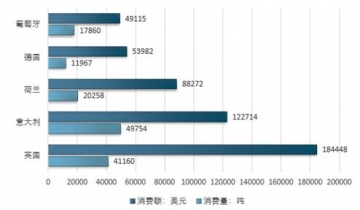 歐洲部分國家紅棗消費量及消費額 |