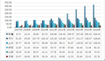 2007-2016年我國主要省市紅棗產(chǎn)量統(tǒng)計:萬噸 |