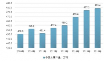 2009-2016年中國(guó)木薯行業(yè)產(chǎn)量情況