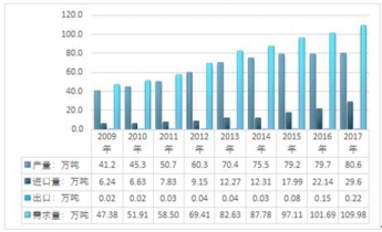 2009-2017年中國(guó)嬰幼兒奶粉行業(yè)市場(chǎng)供需情況