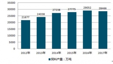 圖表:2014-2017年飼料行業(yè)產(chǎn)量分析