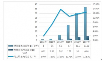2012-2017年中國(guó)動(dòng)力軟包電池行業(yè)總體規(guī)模分析