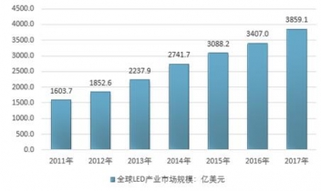 2011-2017年全球LED產(chǎn)業(yè)市場(chǎng)規(guī)模走勢(shì)圖 |