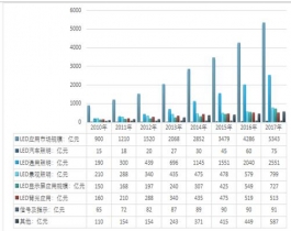 在顯示屏領(lǐng)域,受益于 LED 小間距顯示屏的爆發(fā),LED 顯示屏產(chǎn)品產(chǎn)值快速增長(zhǎng),2017 年產(chǎn)值達(dá)到 732 億元,約占 LED 應(yīng)用市場(chǎng)的 14%。此外,汽車照明、特種照明等新興應(yīng)用領(lǐng)域也在逐漸成為 LED 行業(yè)增長(zhǎng)的新動(dòng)力。