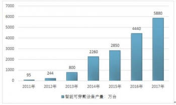 2011-2017年中國智能可穿戴設(shè)備行業(yè)產(chǎn)量情況