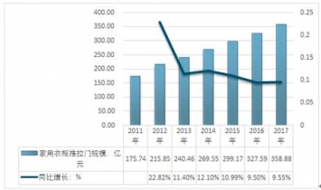 2011-2017年中國家用衣柜推拉門行業規模及增長速度