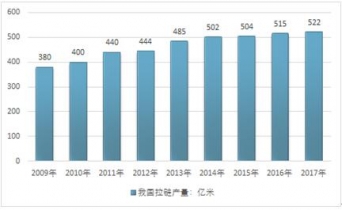 2016年我國國內(nèi)拉鏈產(chǎn)量為515億米,2017年我國國內(nèi)拉鏈產(chǎn)量在522億米左右。