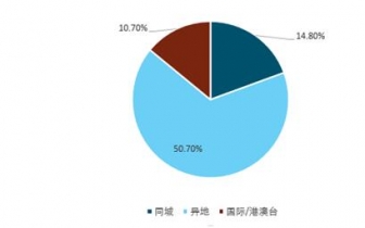 2017年同城業(yè)務量累計完成92.7億件,同比增長25%;異地業(yè)務量累計完成299.6億件,同比增長28.9%;國際/港澳臺業(yè)務量累計完成8.3億件,同比增長33.8%。業(yè)務收入分別占全部快遞收入的14.8%、50.7%和10.7%。