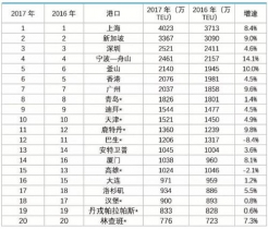 2017年全球港口集裝箱吞吐量TOP20 |