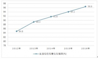 2012-2016我國(guó)城市生活垃圾無(wú)害化處理率分析