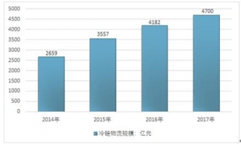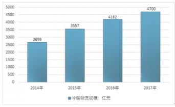 2014-2017年中國冷鏈物流行業(yè)市場規(guī)模情況