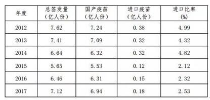 2012-2017年中國國產疫苗和進口疫苗的簽發情況