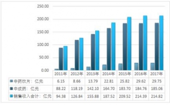 據(jù)統(tǒng)計2017年云南省中藥材加工產(chǎn)業(yè)銷售收入達到214.82億元,其中中藥飲片行業(yè)銷售收入為29.75億元,2017年云南省中成藥銷售收入為185.06億元。