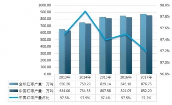 2013-2017年全球紅棗產(chǎn)量走勢圖 |