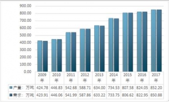 近年來,中國紅棗產(chǎn)品市場總體保持良好的增長勢頭。2009 年全國棗產(chǎn)量424.78萬噸,2017年棗產(chǎn)量達到852.20萬噸。2009 年全國紅棗消費量423.91萬噸,2017年紅棗消費量達到850.88萬噸。