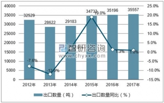 2012-2017年中國(guó)制作或保藏的鰻魚出口數(shù)量統(tǒng)計(jì)圖