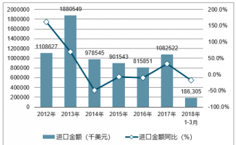 2019年1-3月中國(guó)小麥進(jìn)口數(shù)量為64萬(wàn)噸,同比下降40.6%;2019年1-3月中國(guó)小麥進(jìn)口金額為186305千美元,同比下降18%。