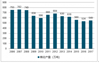 2006-2019年中國棉花產(chǎn)量走勢圖
