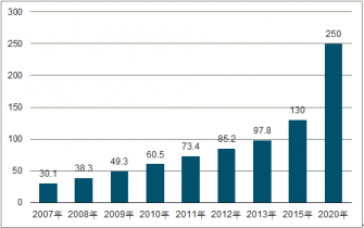 2007-2020年全球生物識別技術行業市場規模與預測(億美元)