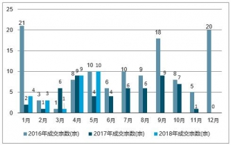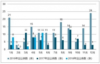 2016-2019年牡丹江市土地出讓宗數走勢圖
