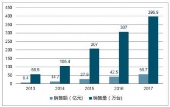 據中國產業信息網統計,2013年我國掃地機器人銷售量56.53萬臺,2016年增長至306.96萬臺,銷售量復合年度增速75.77%,2017年銷量預計可達400萬臺。2013年我國掃地機器人銷售額8.38億元,2016年達42.50億元,銷售額復合年度增速71.81%,2017年銷售額預計可達56.71億元。與我國目前家用吸塵器30%-40%的滲透率及美國掃地機器人16%的滲透率相比,我國掃地機器人滲透率提升空間廣闊。我們認為受消費升級和我國人口老齡化問題影響,未來消費者對清潔類家電的剛性需求會愈加明顯。