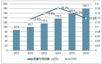 圖表:2015-2019年面膜行業(yè)市場(chǎng)規(guī)模分析