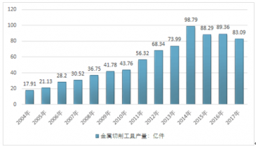 2004-2019年我國金屬切削工具產(chǎn)量走勢圖 |