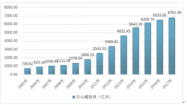 根據(jù)國(guó)家統(tǒng)計(jì)局?jǐn)?shù)據(jù):2016年我國(guó)辦公樓開(kāi)發(fā)投資總額為6533.00億元,2017年我國(guó)辦公樓開(kāi)發(fā)投資總額增長(zhǎng)至6761.36億元,投資規(guī)模同比增長(zhǎng)3.50%。