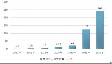 2011-2017年中國(guó)霧化吸入器市場(chǎng)需求量 |