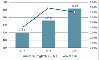 2015-2017 年全球己二酸產(chǎn)能統(tǒng)計(jì) 單位:萬(wàn)噸