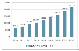 2006-2017E年我國傳媒產(chǎn)業(yè)總產(chǎn)值及預(yù)測