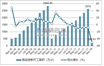 2019年1-3月上海市商品房新開工面積為262.81萬(wàn)㎡,同比下降50.3%;2017年1-12月上海市商品房新開工面積為2618萬(wàn)㎡,同比下降7.8%。