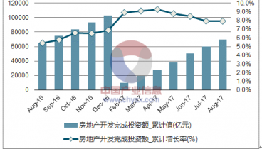 數(shù)據(jù)顯示:2017年1-8月份中國(guó)房地產(chǎn)開(kāi)發(fā)完成投資額69494.00億元,同比增長(zhǎng)7.90%;2016年1-12月份中國(guó)房地產(chǎn)開(kāi)發(fā)完成投資額102580.61億元,同比增長(zhǎng)6.90%。