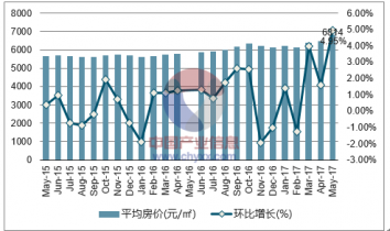 2017年5月湛江市房地產(chǎn)平均價(jià)格為6814元/㎡,環(huán)比增長4.95%,同比增長17.68%。