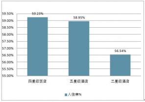 2019年2月,全國(guó)星級(jí)酒店平均出租率為58.24%,比上月提高8.13%。平均房?jī)r(jià)為354.73元,每間可供房收入為207.56元;客房收入占比51.13%,餐飲收入占比35.59%。2019年3月份三星及以上星級(jí)飯店的客房平均入住率為58.24%,其中四星級(jí)飯店的入住率最高達(dá)59.23%,五星級(jí)酒店平均入住率為58.95%,三星級(jí)酒店入住率達(dá)56.54%。3月份平均房?jī)r(jià)354.73元,五星級(jí)與四星級(jí)的房?jī)r(jià)平均相差150.7元。