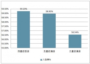 2019年2月,全國(guó)星級(jí)酒店平均出租率為58.24%,比上月提高8.13%。平均房?jī)r(jià)為354.73元,每間可供房收入為207.56元;客房收入占比51.13%,餐飲收入占比35.59%。2019年3月份三星及以上星級(jí)飯店的客房平均入住率為58.24%,其中四星級(jí)飯店的入住率最高達(dá)59.23%,五星級(jí)酒店平均入住率為58.95%,三星級(jí)酒店入住率達(dá)56.54%。3月份平均房?jī)r(jià)354.73元,五星級(jí)與四星級(jí)的房?jī)r(jià)平均相差150.7元。