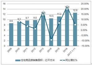 2009-2017年中國(guó)住宅商品房銷售面積情況