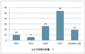 2014-2019年中國區(qū)塊鏈融資數(shù)量走勢分析