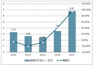 海南旅游外匯收入也實現(xiàn)歷史突破。2013-2015年海南外匯收入增速持續(xù)下滑,2015年海南旅游外匯收入跌至2.48億美元,2016年海南外匯旅游收入情況好轉,旅游收入再次回到3億美元,達到3.50億美元,同比增長41.3%。2017年海南外匯旅游收入暴漲94.6%,旅游收入為6.81億美元。