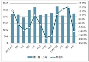 4月份,進口煤炭2228萬噸,同比下降10.1%。1-4月份,進口煤炭9768萬噸,同比增長9.3%。