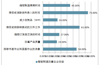 制造業(yè)企業(yè)的制造周期時間是指從訂單發(fā)放經(jīng)車間周轉(zhuǎn)到最后發(fā)貨的總時間。制造周期時間越短,制造商庫存越少,市場需求變化時報廢的材料越少,調(diào)整適應(yīng)變化的靈活性越大。反之制造周期時間越長,積壓的多,不良及廢品增多,儲存費(fèi)用等等都會增加,此外,制造周期越長,工廠車間可能出現(xiàn)的問題越多。減少制造周期時間不僅影響材料預(yù)備,還可以改善出貨計劃,加快產(chǎn)品輸出,因?yàn)椴牧显诘较乱粋操作之前停留的時間更短,故過程中的在制品減少。因?yàn)楫a(chǎn)品處理更少,故產(chǎn)品質(zhì)量得可以到改善。制造周期時間是在多數(shù)電子和電器等復(fù)雜品類裝配中的最大的問題,制造周期每縮短一倍,企業(yè)年利潤收益預(yù)期可增長2.2倍。智能制造可顯著縮短制造周期時間、提升生產(chǎn)效率,降低成本,提高單位時間產(chǎn)出,從而提升企業(yè)收益。因此,出于企業(yè)自身對盈利的追求,它們亦將會加大對智能制造領(lǐng)域的投入。