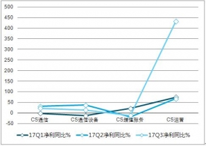 2019年Q1-Q3通信細(xì)分板塊各季度凈利潤同比(%)